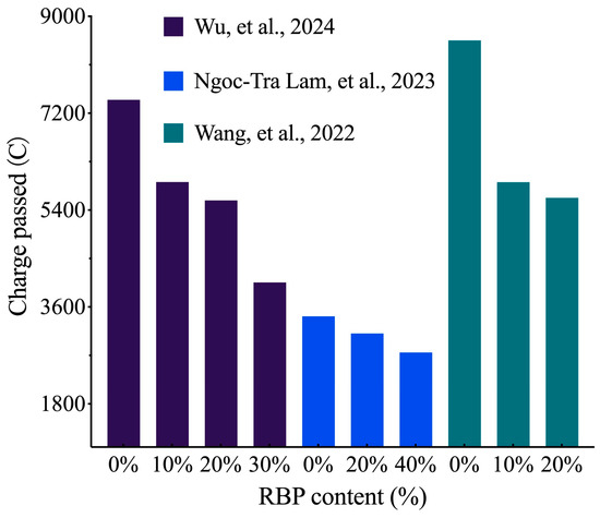 - Ma, Z.; Li, W.; Wu, H.; Cao, C. Chloride permeability of concrete mixed with activity recycled powder obtained from C&D waste. Constr. Build. Mater. 2019, 199, 652–663. [Google Scholar]