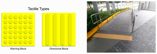 An approved pavement material is usually safe from skids and falls when it is in a dry and clean condition. However, when it is wet or lubricated, the effect of hydroplaning or aquaplaning (loss of traction when a layer of water builds up between the sole of the footwear and the surface of the pavement) may take place. The friction between the sole of the footwear and the pavement surface depends on the ability of the sole’s grooves to disperse water beneath. Hydroplaning or aquaplaning occurs when the sole of the footwear encounters more water than it can dissipate, in which case, this can lead to a slip and fall. Tactile ground surface indicators were devised in Japan in 1965 to facilitate the safe movement of people with impaired vision. It has been widely accepted and used globally since then. The two types of tactile indicators found in practice are (a) warning blocks that indicate the location of hazards, and (b) directional blocks that indicate the direction of travel (
