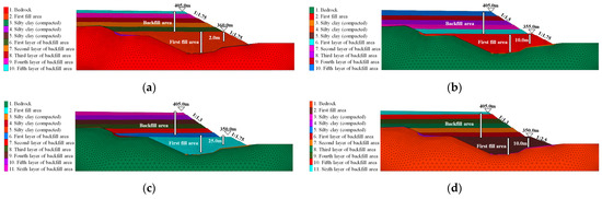 The four backfill schematic of the slopes: (a) scheme A; (b) scheme B; (c) scheme C; (d) scheme D.