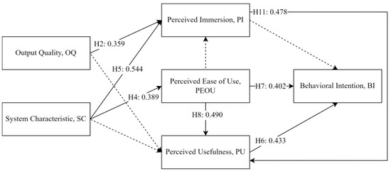 Generally, the output quality of VR mainly depends on the hardware related to picture quality. When the output quality of the VR system is higher, the user can be better immersed in the virtual environment and thus easily understand the contents of the system. In this case, users will be able to make better choices based on their own understanding. Therefore, the improvement of output quality directly affects users’ perceived usefulness and perceived immersion. Therefore, this study proposes the following hypotheses: