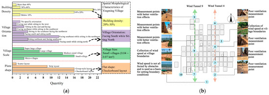 Figure 3. Typical selection and measurement point layout of Yingming Village. (a) Typical village selection; (b) measurement point distribution map.