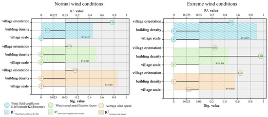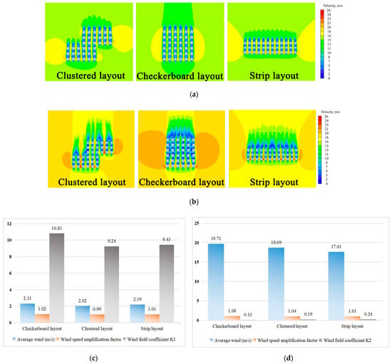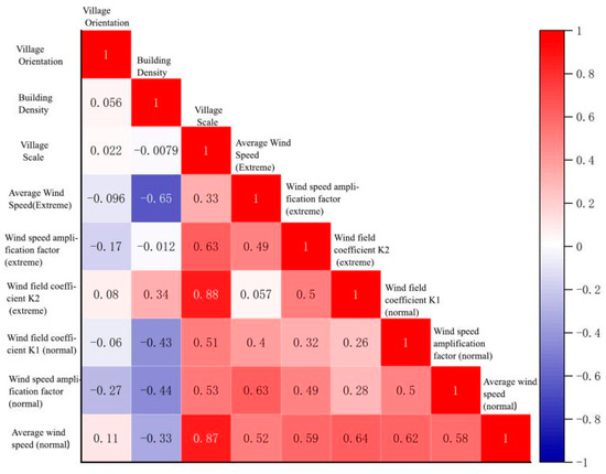 From the above, it can be seen that the average wind speed, as a fundamental and intuitive indicator, can reflect the overall wind speed level within the assessment area, helping to understand the basic characteristics of the wind environment in the village. The wind speed amplification factor is used to quantify the amplification effect of wind speed in specific areas, which is significant for assessing regions within the village that may experience excessively high local wind speeds. The K1 and K2 coefficients combine three indicators—the area ratios of comfortable wind zones, calm wind zones, and strong wind zones—to obtain ventilation efficiency and comfort under different wind conditions (normal and extreme). Together, they reflect the basic characteristics of the wind environment, local amplification effects, and comfort and stability under varying wind conditions. In summary, this paper conducts a comprehensive evaluation of the wind environment in coastal villages on Naozhou Island using four indicators: average wind speed, wind speed amplification factor, wind field coefficient K1, and wind field coefficient K2.