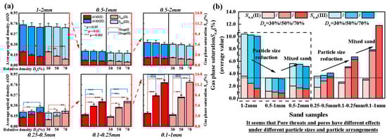 | Test ID | Particle Diameter Range (mm) | Relative Density Dr (%) | Porosity n | Average Optical Density in Stage II AOD(II) | Average Optical Density in Stage III AOD(III) | Gas Phase Saturation in Stage II Sr,a(II) (%) | Gas Phase Saturation in Stage III Sr,a(III) (%) |