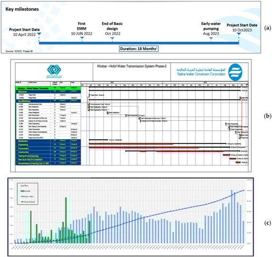 The first was a real case project, the Khobar–Hufof water transmission system (KHWTS), with a total budget of SAR 351,090,000, inclusive of 30% profit. The project team comprised several engineers in various roles, and the project spanned 18 months, as outlined in the project baseline. The project’s work breakdown structure was categorized into four main groups, each containing related work items detailed in
