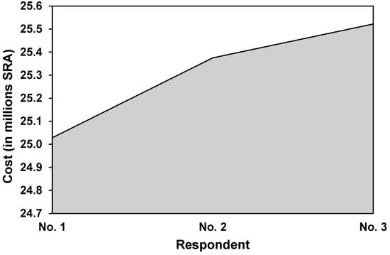 The second case was a real commercial building located in Riyadh. The budgeted cost at completion was SAR 180 million and the planned schedule was 30 months. The project involved earthworks, structural construction, and finishing works. The validation process took place during the first month of execution, which is a critical period for forecasting cost accuracy due to initial uncertainties and risks. During the first month, data on the project’s actual performance were collected, which include the following: (1) actual cost (AC) was SAR 7.5 million; earned value (EV) was SAR 6.75 million; and the cost performance index was 0.90. This slightly unacceptable cost performance was mainly due to inefficiencies in the early stages and external factors such as material delivery delays. Using these data, the developed model was applied to forecast the final cost at completion, factoring in risks and uncertainties related to material costs, labor productivity, and market conditions. The results from both the traditional EVM and the developed model are as follows: Using the traditional EVM, the forecast cost at completion was SAR 200 million, while applying the developed model yielded the forecasted cost at completion to be SAR 193 million, while the actual cost was SAR 180 million. The EVM forecasted a final cost of SAR 200 million based on the CPI of 0.90, while the developed model provided a more accurate forecast of SAR 193 million, closer to the actual budget of SAR 180 million. This discrepancy arises because the EVM assumes the current performance trend will continue unchanged, while the developed model integrates expert judgment to adjust for potential changes. The accuracy of these forecasts was measured using the mean absolute percentage error (MAPE), as follows: The MAPE of the developed model was 1.84%; the MAPE for the traditional earned value was 3.11%. The developed model, with a MAPE of 1.84%, demonstrated greater accuracy in forecasting costs under uncertain conditions compared to the traditional EVM, which had a MAPE of 3.11%. This shows the developed model’s ability to adapt to project-specific conditions and uncertainties, providing a more realistic and flexible cost forecast.
