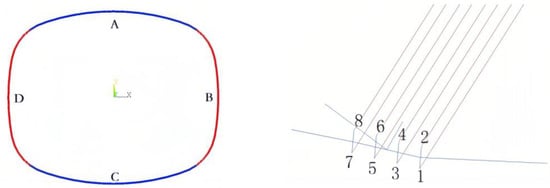 The ring cable has eight cables, and each of them are composed of four segments (i.e., A, B, C, D). The sections and numbers are shown in Figure 7. Therefore, a total of 32 cable segments are considered. The length error is equally divided into each segment of the ring cable, and each segment also generates 1000 random error samples.