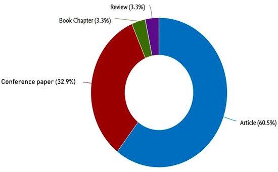 The study of publication trends in any scientific field is crucial for evaluating the research background and fostering innovative advancements. The search for studies in the field of FM in HEIs generated 428 articles (259), conference proceedings (141), reviews (14), and book chapters (14), as shown in Figure 2. The publications include 98 Open, 32 Gold, 11 Hybrid Gold, 29 Bronze, and 62 Green access documents, of which 426 have been published, while 2 are in press. The documents are published in English (416), German (5), Japanese (3), Chinese (2), Lithuanian (2), or Turkish (1) languages. Furthermore, the major subject areas for publications on FM in higher education are Engineering (227), Social Sciences (140), Business, Management and Accounting (79), Computer Science (64), and Environmental Science (40), as depicted in Figure 3. This study reveals that English is the preferred language for researchers in FM at HEIs, with articles and open access being the preferred document types and access models. This finding indicates that researchers in the field have significant access to research funding or financial support, which accounts for the high number of open-access documents. In addition, the subject area of the published documents indicates that the research field is multidisciplinary. According to Baker [39], research on multidisciplinary dimensions is critical for holistically addressing problems without bias to cater to all factors. Overall, these dynamics account for a large number of publications and research progress in FM in higher education institutions, as illustrated in Figure 4.