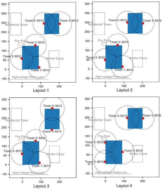 The top four layouts encompass all the potentially optimal layouts we have envisioned. A meticulous evaluation of these layouts validated that Layout 1 is the superior solution. Moreover, the consistent convergence of the competitor algorithm to layouts equivalent to Layout 1 across all ten trials in the case study substantially reinforced our confidence in identifying Layout 1 as the optimal solution. This consistent performance also attests to the robustness of the competitor algorithm, demonstrating its reliability in solving complex layout planning problems like tower crane placement.