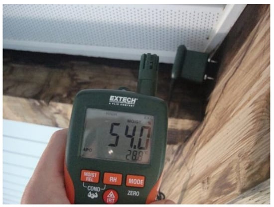 Measurements were taken in the environment using an Extech MO295 thermo-hygrometer (Extech Instruments, Hudson, NH, USA). Specifically, the relative humidity, dry bulb temperature, dew point, and surface temperature of the interior walls were recorded using infrared.