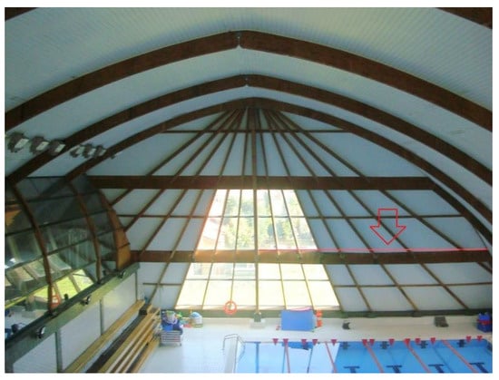 7]. Therefore, to reduce the probability of an attack, the moisture content of the wood is generally recommended to remain below 20%; this value should only be exceeded for very temporary and short-term periods. For indoor swimming pools, the management of the building requires controlling the relative humidity levels of the environment so that the moisture content of the wood does not exceed the values enabling the growth of xylophages. Structural timber placed inside an indoor swimming pool is considered class 2 because it is located under cover and not exposed to the weather but remains subjected to occasional, non-persistent wetting [
