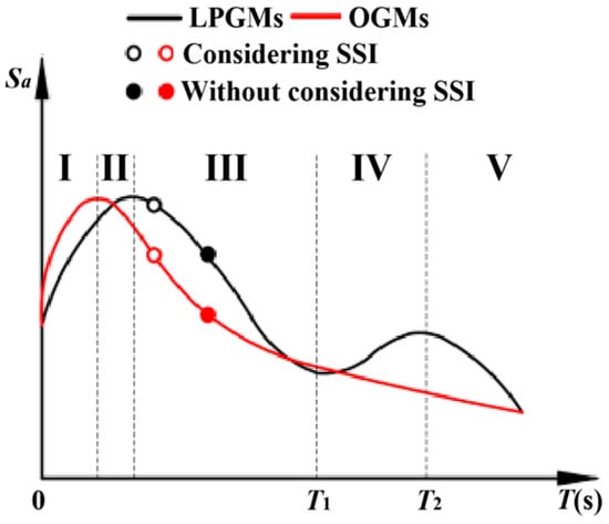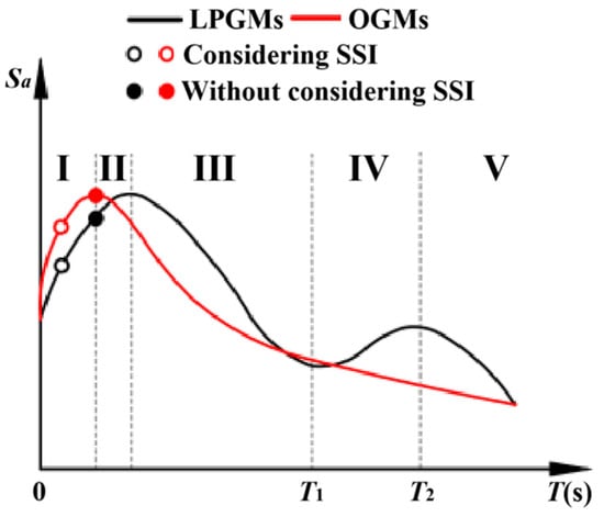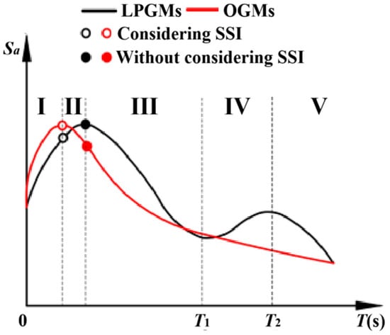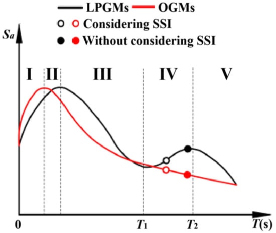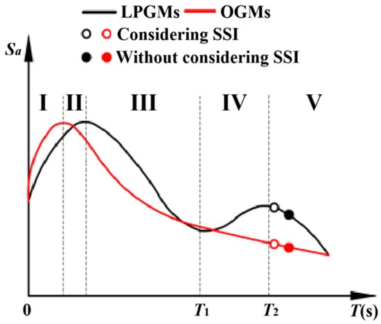 Case 5: The structural period is located in region IV, where the curve for long-period ground motions rises with values greater than 1, while that for ordinary ground motions falls with values less than 1, as shown in Figure 26.