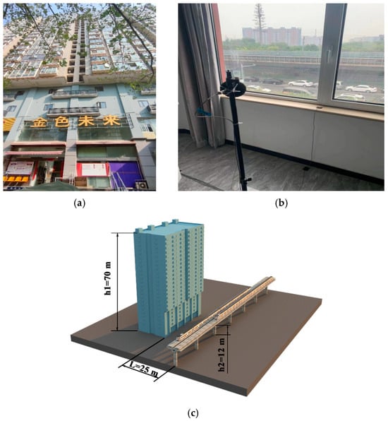 By the end of 2023, a total of 59 cities in China had operational urban rail transit lines, boasting an aggregate operating mileage exceeding 11,000 km []. While urban rail transit significantly enhances travel convenience for the public, it also generates notable environmental noise and vibration issues. These problems are particularly pronounced for elevated lines situated near residential areas, where frequent noise and vibration complaints have become a major concern [,,,,,,,].