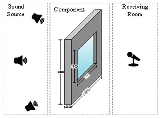 Five wall thicknesses—100 mm, 150 mm, 200 mm, 250 mm, and 300 mm, are considered to assess the influence of wall thickness on sound insulation performance. These specific thicknesses are based on common construction practices in engineering applications. A single-pane glass window is adopted for the analysis.