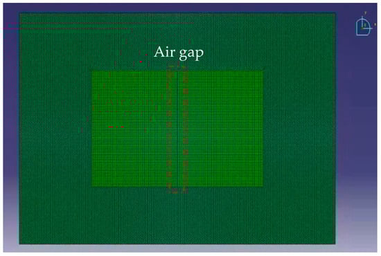 Considering the effect of sound leakage, the window gap was determined based on site conditions and positioned centrally with a width of 10 mm. The finite element model of the window-wall assembly component with an air gap is illustrated in Figure 13.