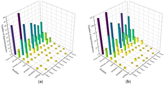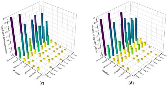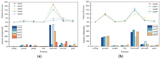 - Aerosol droplets primarily deposited on the front wall and floor. The front wall had the highest deposition rate, reaching 22.63% in Case 3. In Case 9, the floor had the highest deposition rate (10.41%) due to rapid descent of jet flow, turbulent eddies, and gravity. As particle size increases, more particles deposited on the bed. These findings highlight that during disinfection in a two-bed ward, focus should be placed on the front wall, floor (especially under the bed), and bed surface, which are frequently touched by ASs and HCWs, requiring extra protection.