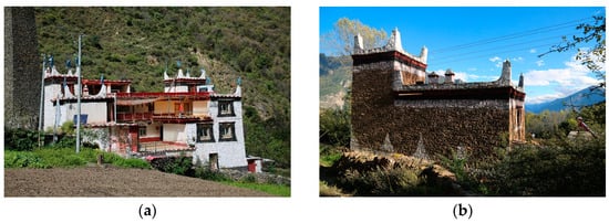 (a) Traditional Tibetan and Qiang dwellings in Li County; (b) Traditional Tibetan and Qiang dwellings in Danba County.