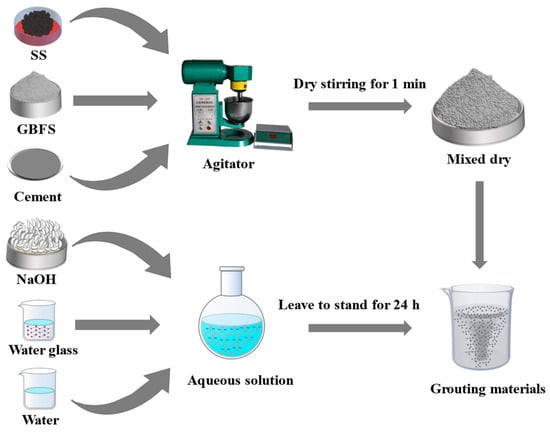 - Li, M.; Huang, G.; Cui, Y.; Wang, B.; Chang, B.; Yin, Q.; Zhang, S.; Wang, Q.; Feng, J.; Ge, M. Coagulation mechanism and compressive strength characteristics analysis of high-strength alkali-activated slag grouting material. Polymers 2022, 14, 3980. [Google Scholar] [CrossRef]