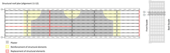 Mapping of interventions on the roof’s soffit structure (Source: Project of execution—April 2020) [16].