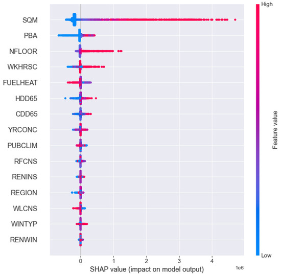 In summary, this study employs several advanced machine learning and simulation techniques to analyze and optimize neighborhood-scale energy consumption. Specifically, SHapley Additive exPlanations (SHAP), CatBoost Regressor, Grasshopper, and Honeybee were utilized, each serving distinct roles within the framework. SHAP provides interpretability to the machine learning models by attributing the output predictions to input features, thus helping us understand the impact of each feature on the energy consumption predictions [58]. CatBoost Regressor, a gradient boosting algorithm that handles categorical features efficiently, was chosen for its high predictive accuracy and robustness, making it suitable for energy consumption modeling [59,60]. Grasshopper and Honeybee, which are plugins for the Rhino environments, were employed for their powerful capabilities in parametric design and energy modeling [61,62,63,64]. Grasshopper facilitated the creation of complex geometrical configurations and parametric variations, which were then analyzed for their energy performance using Honeybee. Honeybee leveraged an EnergyPlus engine to perform detailed energy simulations, providing us with granular insights into the energy dynamics of different building designs.