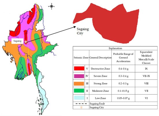 The original seismic zone map of Myanmar, which was revised by Dr. Maung Thein, U Tint Lwin Swe, and Dr. Sone Han in 2005, is modified by expressing the Sagaing Fault line and Sagaing City in