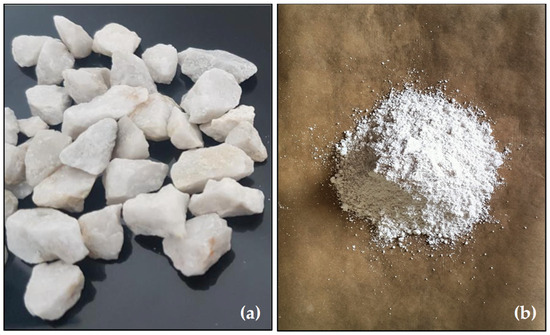 Additionally, Algeria is one of Africa’s leading producers and manufacturers of high-quality marble [4]. Marble is defined as a metamorphic rock formed from limestone exposed to heat and metamorphic pressure [5], consisting mainly of the mineral calcite (CaCO3) and other secondary minerals, including clay minerals, micas, quartz, pyrite, iron oxides, and graphite [6]. Throughout history, marble has been used for sculptures and statues by ancient civilizations such as the Greeks and Romans. However, today’s overproduction of marble results in substantial quantities of powder and sand waste during the production process. Previously, Algeria produced up to 30,000 tons of marble and granite; however, current production has fallen to 14,000 tons [7]. Approximately 70% of this production is wasted during extraction, processing, and polishing stages [8]. The continued overproduction of marble has led to a significant accumulation of powder and sand dust waste, causing environmental challenges during manufacturing, extraction, and processing operations [6,9]. Responding to this issue, researchers have recognized the potential of using marble waste as an alternative building material or as a component of composites, with notable economic and environmental benefits [10,11].