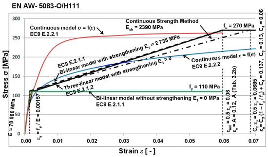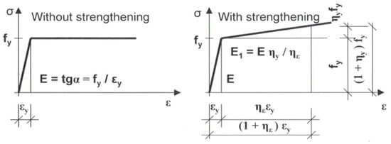 - Steel and aluminum are regarded as an ideal elastoplastic material, the behavior of which is described by the idealized stress–strain diagram with sufficient accuracy (see Figure 2);
