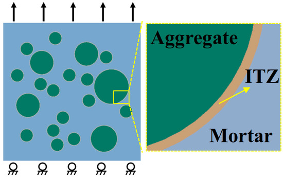- Lee, K.M.; Park, J.H. A numerical model for elastic modulus of concrete considering interfacial transition zone. Cem. Concr. Res. 2008, 38, 396–402. [Google Scholar] [CrossRef]