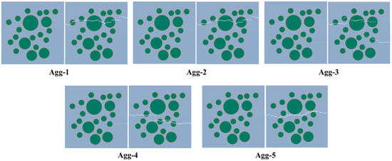 - Huang, J.-N.; Hu, M.-Y. Meso-scale analysis of failure characteristics and mechanical properties of lightweight aggregate concrete (LWAC) with different aggregate volume fractions and shapes under axial tension. Constr. Build. Mater. 2022, 321, 125503. [Google Scholar] [CrossRef]