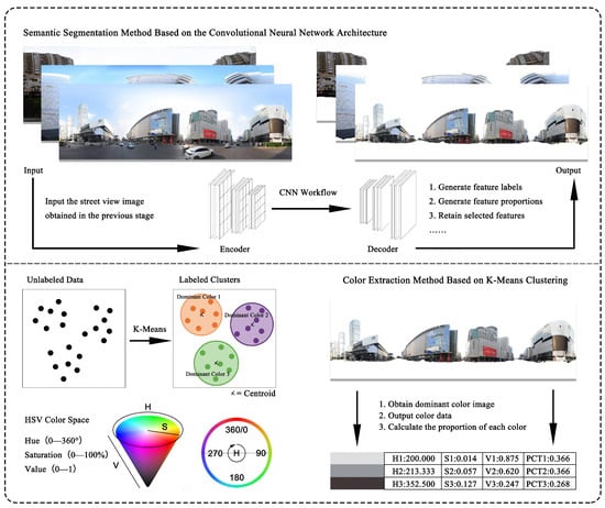 We employed the segmented neural network (SegNet) model, a convolutional neural network (CNN) architecture, in PyCharm to semantically segment the 10,396 panoramic street-view images and extract architectural elements. In the pre-preparation we compared CNN with PSPNet, Unet, and other methods and verified its more accurate results. Subsequently, the CameraRaw tool in Photoshop (Adobe) was employed to perform batch white-balance adjustments on the images to eliminate color distortions caused by environmental factors such as weather and time of day.