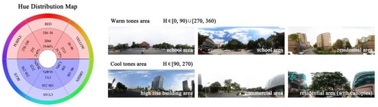 In this study, the dominant color was used to evaluate the urban architectural color. Dominant color refers to a set of primary colors in a particular context that effectively and intuitively mirrors the characteristics and general inclination of a color palette. The dominant color in urban architecture plays a critical role in shaping a city’s visual identity, thereby directly influencing the overall quality of the built environment. It is one of the principal media through which individuals perceive urban architecture, rendering it a significant and viable research domain [].