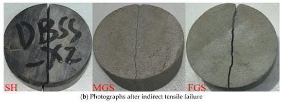 In this compression-to-tension direct tensile test and the indirect tensile test, three parallel experiments were conducted for each specimen. The tensile stresses obtained from the direct tensile test and indirect tensile test are as follows: