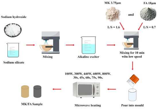 - Sun, Y.; Zhang, P.; Hu, J.; Liu, B.; Yang, J.; Liang, S.; Xiao, K.; Hou, H. A Review on Microwave Irradiation to the Properties of Geopolymers: Mechanisms and Challenges. Constr. Build. Mater. 2021, 294, 123491. [Google Scholar] [CrossRef]