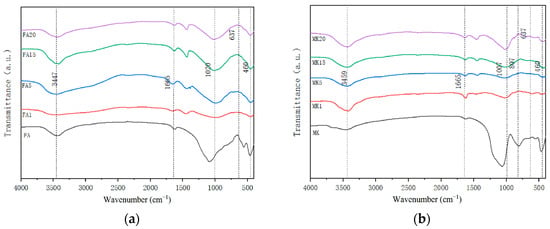 3.2. Characteristics of XRD and FT-IR Spectroscopy