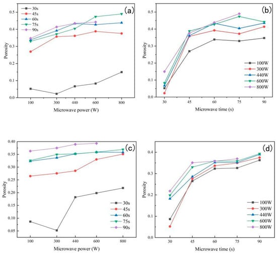 3.3. Effect of Microwave Radiation Power and Time on Pore Structure of Geopolymer