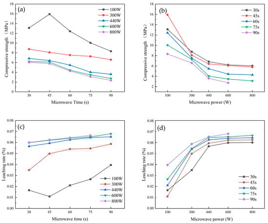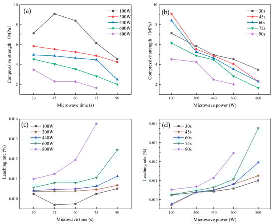 3.4. Effect of Microwave Radiation Power and Time on Compressive Stress and Heavy Metal Leachability of Geopolymer