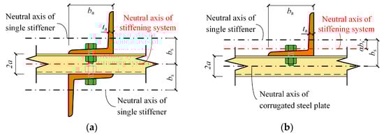 - This work focused on an equivalent method for the bending stiffness of single-side stiffeners, and subsequent work could further consider the torsional impact of stiffeners on SS-SCSWs. Moreover, a further exploration of the connection forms between stiffeners and corrugated plates could be undertaken.
