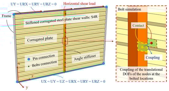 - Gorji, M.S.; Cheng, J.J.R. Seismic behavior of coupled steel plate shear walls with simple boundary frame connections. Earthq. Eng. Struct. Dyn. 2019, 48, 507–527. [Google Scholar] [CrossRef]
