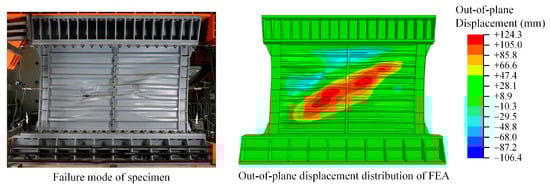 - The vertical stiffeners produce a large out-of-plane deflection when the restraining effect of the vertical stiffeners is weak. The out-of-plane buckling wave of the corrugated plate spans across the vertical stiffeners, exhibiting an overall buckling mode of the entire plate.