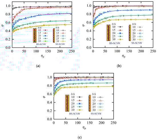 - In the elastoplastic shear resistance analyses, the elastoplastic equivalent flexural stiffness EIp with a coefficient of 0.7 was proposed of SS-SCSWs. The same fitting formulas of the elastoplastic transition stiffness ratios η0,p and the reduction factor φ could be utilized for SS-SCSWs and BS-SCSWs. The shear elastoplastic buckling modes were also similar compared to BS-SCSWs, further confirming the rationality of the equivalent method.