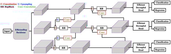 The core of YOLOv6 is EfficientRep, which is a fast and strong feature extractor based on RepVGG. As can be seen, RepVGG has a basic structure, consisting of a stack of 3 × 3 convolutions, although it is well-tuned for hardware optimization. EfficientRep improves upon RepVGG in the way that it is better designed for feature extraction in the particular case of object detection. It makes use of RepBlocks, which consist of both training-time as well as inference-time representations in order to minimize computational complexity while maintaining performance.