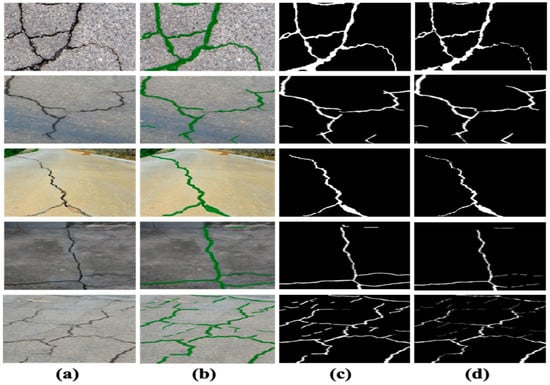 Figure 10c, YOLOv5 and YOLOv6 struggle with micro-cracks and complex distribution patterns, resulting in segmentation masks that deviate from the true masks.