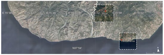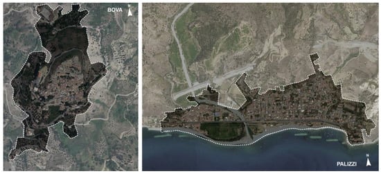 (Left) highlighted map of the historical centre of Bova; (Right) highlighted map of Palizzi M.