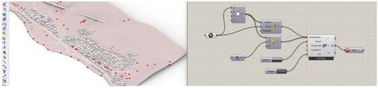 An original Grasshopper script was developed to process and visualize topographical features such as contours, slopes, elevations and other relevant spatial information. The script utilized components such as “Import SHP” for vector data and “Raster to Point” for elevation data, allowing for the direct import and processing of various GIS datasets, including shapefiles and digital elevation models.