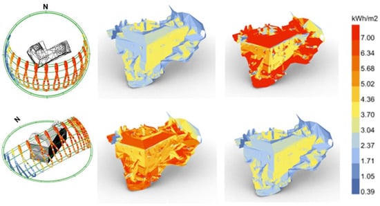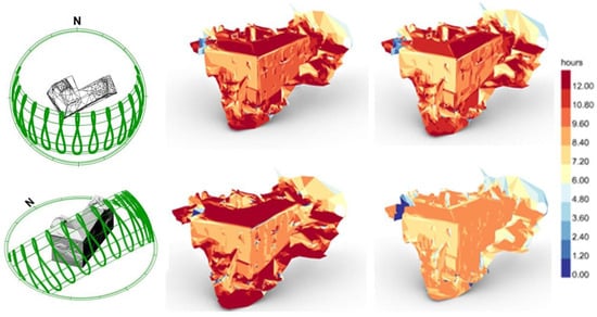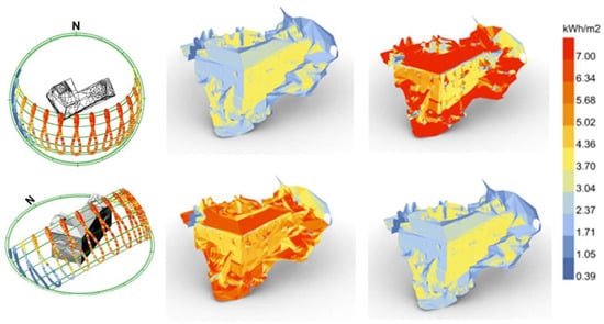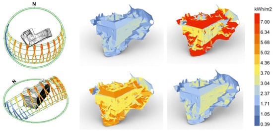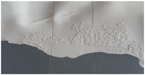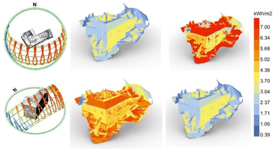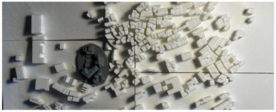 In the case of Palazzo Mesiani, the photogrammetric survey with a drone enabled the creation of a detailed 3D model of the building, subsequently used to create the physical prototype. This allows an in-depth analysis of the incidence of solar radiation and material degradation (Figure 27).