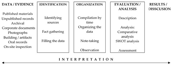 Lastly, the third stage of research focused on evaluating the case study. This stage comprised the comparison of the current state and the adopted plan. The evaluation was based on drafts, situations, and field research. In addition, collected materials related to the selected case study were visually and descriptively interpreted to define the use of the area. Finally, the SWOT analysis was used to compare external and internal influences on the site, to bring out the relation to the built environment and the value of the area. Furthermore, scientific and professional literature published by foreign and domestic authors was reviewed. Comparative examples of successful former industrial transformation sites in other countries and Croatia were made.