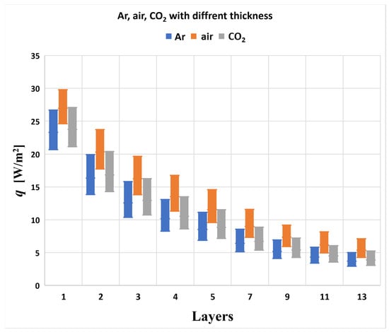 Studies on multi-layer thermal insulation systems, including those with air chambers and various insulating materials, demonstrate significant material savings and enhanced thermal resistance. Optimal insulation thickness varies based on climatic zones, building characteristics, and economic factors, with life-cycle cost analysis playing a crucial role in determining the best solutions. The enhancement of Trombe wall systems’ efficacy in specific climates by inert gases, particularly argon, is demonstrated. Both the experimental and numerical investigations evidenced the minimal effects of channel width and vent height variations. However, the air gap width and storage wall thickness were identified as critical components. Substituting argon for air in the air gap significantly enhances the system’s efficiency by approximately 14.8%. Employing argon gas can enhance the cost-effectiveness and efficiency of passive heating systems in regions with comparable climates. Adding argon to Trombe wall systems results in enhanced overall performance and more consistent interior temperatures [].