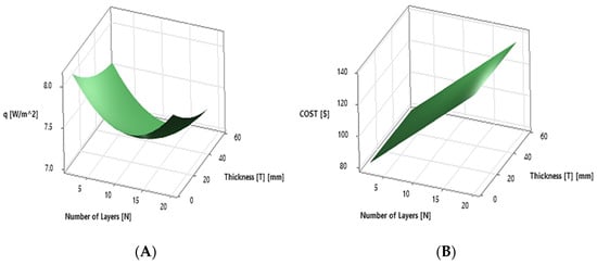 - From the point of view of economic optimization, the finding is the following: while increasing the number of plastic layers can lead to substantial savings due to decreased radiation heat transfer, hence decreasing the heat loss, it also necessitates greater investment due to the high cost of plastic. Consequently, the total gain diminishes for walls with many layers. Furthermore, as the number of layers increases, conduction also increases, offsetting the decrease in radiative heat transfer. Therefore, the optimal number of plastic layers from an economic point of view is 11, which is fewer than if only thermal optimization is performed. Above this, the heat loss still decreases, but the life-cycle cost of housing starts to increase. Moreover, if a high-reflectivity layer covers the plastic layer, only one layer is enough to decrease heat loss to the level of eleven plastic layers without this reflective layer. Hence, one layer with reflective coating minimizes the heat loss as well as the cost of housing. These two economic optimums—eleven plastic layers without and one plastic layer with reflective coating—perform better than the standard walls in initial investment, heating load, and total cost of housing as well. We found for an insulation thickness of 2 cm, the maximum total life-cycle savings are 335.14 and 350.52 USD, respectively, while the minimum savings are 16.06 and 31.44 USD, respectively, for multi-layer walls without and with reflective layers compared to conventional walls. The maximum amount of decrease in annual energy loss is 160.73 [kwh/m2], while the minimum amount is 3.32 [kwh/m2], for the multi-layer thermally optimal wall without reflective layers compared to conventional walls.