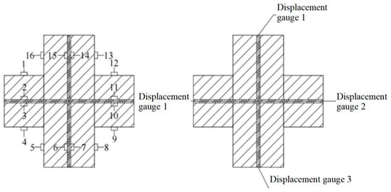 Layout of strain gauges and displacement meters for cross-shaped steel–bamboo composite columns.