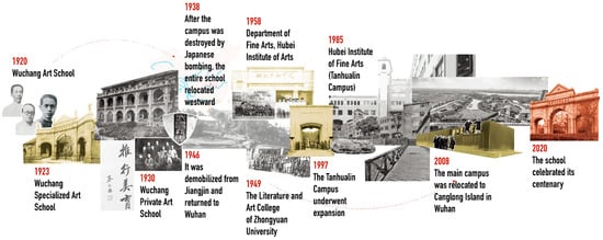 - History of Hubei Institute of Fine Arts: Riding the Wind and Waves and Carrying Forward the Past and Opening the Future (1985–2010). Available online: https://dag.hifa.edu.cn/info/1103/1164.htm (accessed on 2 December 2024).
