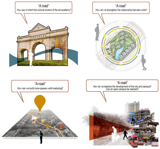 | “Clear divisions, each has its own responsibilities” indicates that the overall divisions of the campus and the functional image of each group are relatively clear. | According to the concept of cross-disciplinary education and the trend of using campus design to emphasize spatial ambiguity, the integration of various regions is relatively low. | Create a regional image, enrich regional functions, and optimize individuals’ quality of life in the region; enhance the richness of regional culture and enhance people’s sense of identity within the region. |